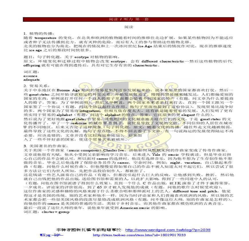 > 001康老師新托福iBT机经预测(阅读+听力)-140830(榜首)