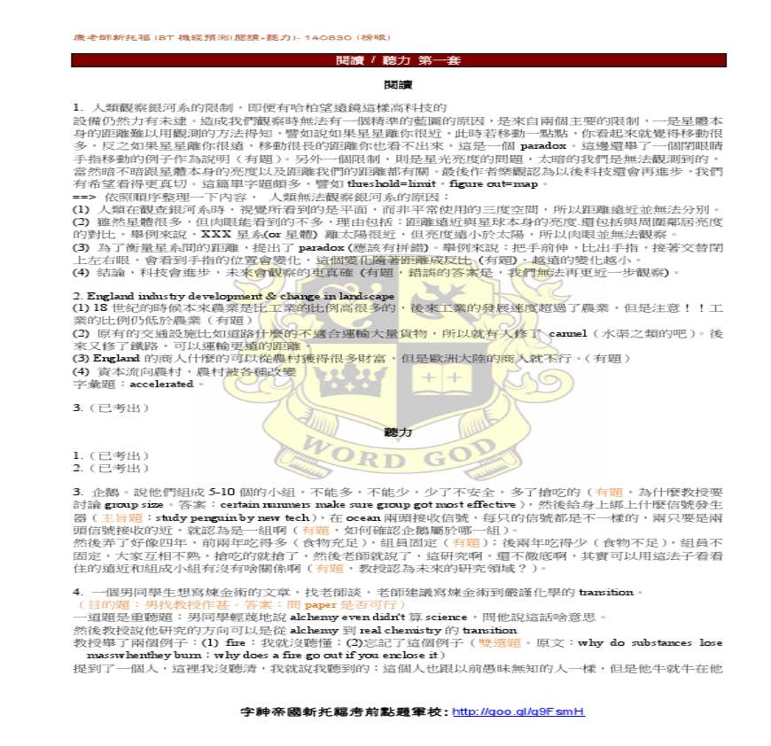 > 002康老師新托福iBT机经预测(阅读+听力)-140830(榜眼)