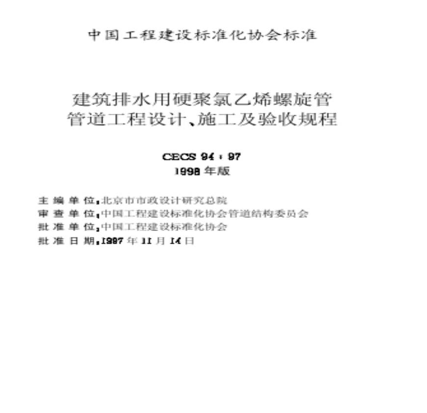 00515建筑排水用硬聚氯乙烯螺旋管管道工程设计、施工及验收规程CECS94-97(1998年版)资料下载,喜欢的朋友可以下载收藏!