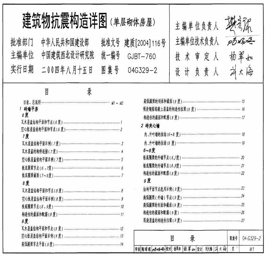 > 04G329-2建筑物抗震构造详图(单层砌体房屋)