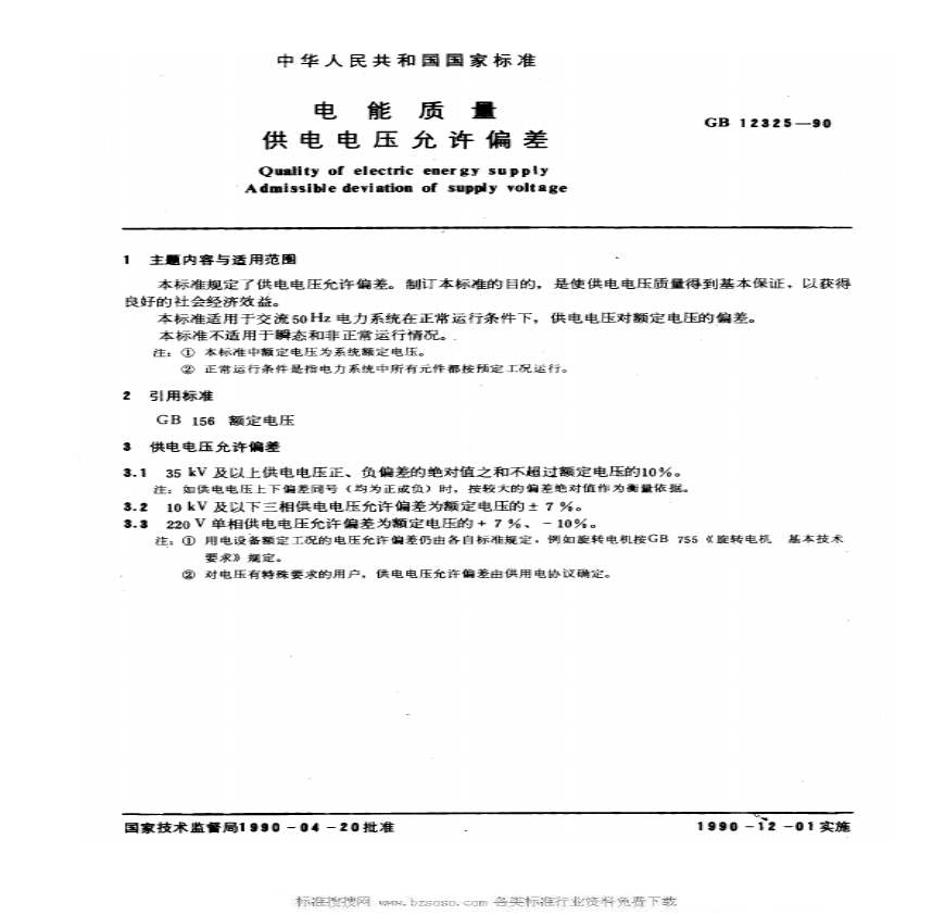 06-GB 12325-1990 电能质量供电电压允许偏差.pdf 免费下载