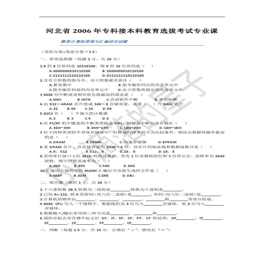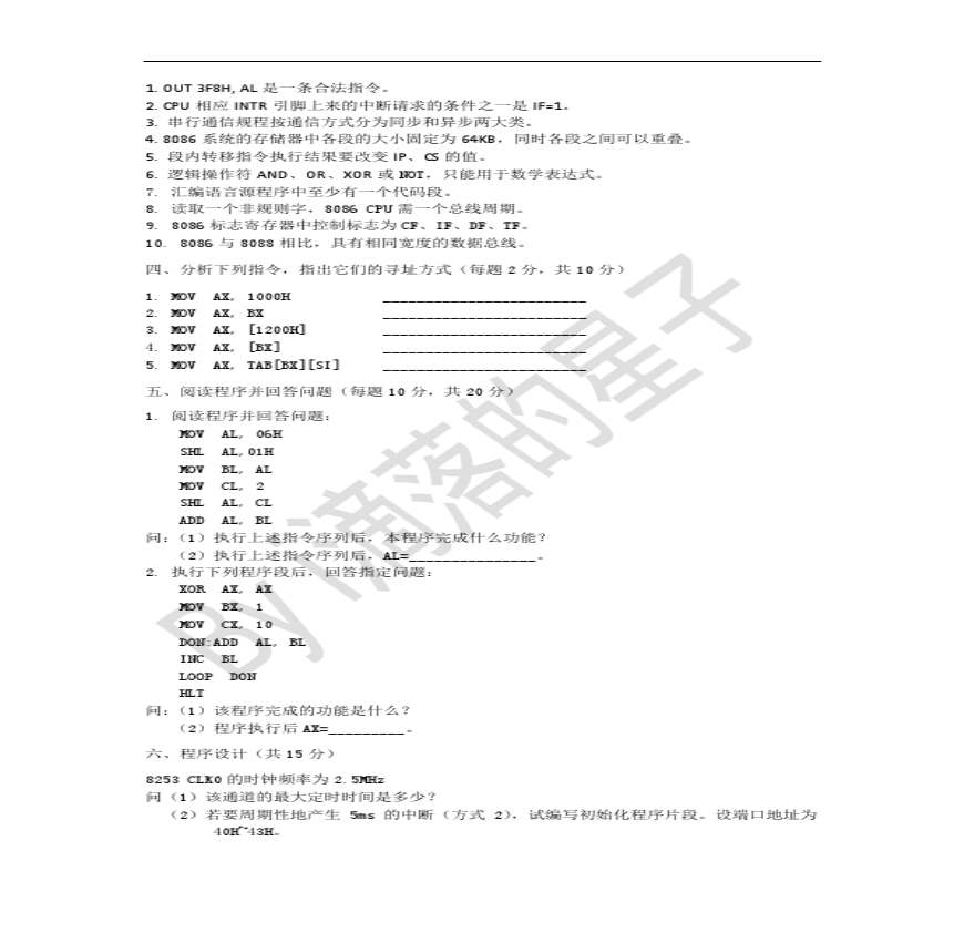 格式:全部DOCPDF质量分考试微型原理及应用题共页微型原理与汇编语言试卷微型原理与汇编语言试卷A一,一,单项选择题,每小题单项选择题,每小题分,共分,共分,分,,当中断源产生中断申请后,只要满足响应条件,CPU在执行当前指令,会自动响应该中断,A,之中B,之前C,之后D科学与技术培养方案软件工程共页考前模拟共页考试微型原理及应用题汇总共页 质量分考试微型原理及应用题共页微型原理与汇编语言试卷微型原理与汇编语言试卷A一,一,单项选择题,每小题单项选择题,每小题分,共分,共分,分,,当中断源产生中断申请后,只要满足响应条件,CPU在执行当前指令,会自动响应该中断,A,之中B,之前C,之后D年河北课考试大纲科学与技术、人工智能、软件工程、数据科学与大数据技术、络工程、物联工程、信息管理与信息系统考试说明(C语言程序设计、微机原理与接口含汇编语言)共页