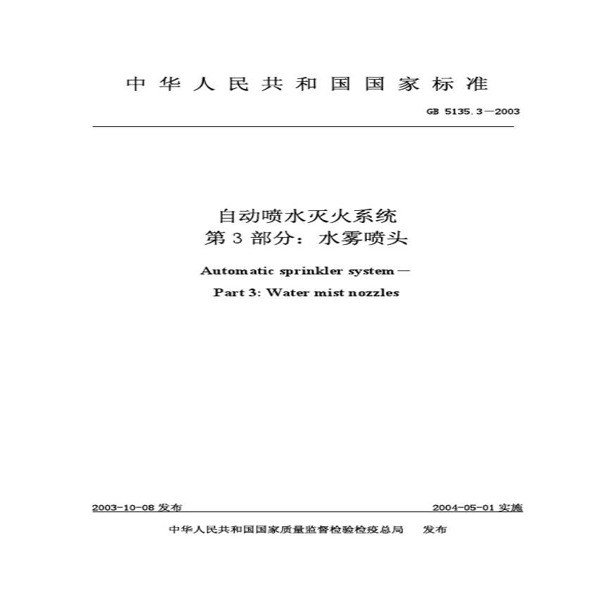 GB5135.3-2003自动喷水灭火系统-水雾喷头