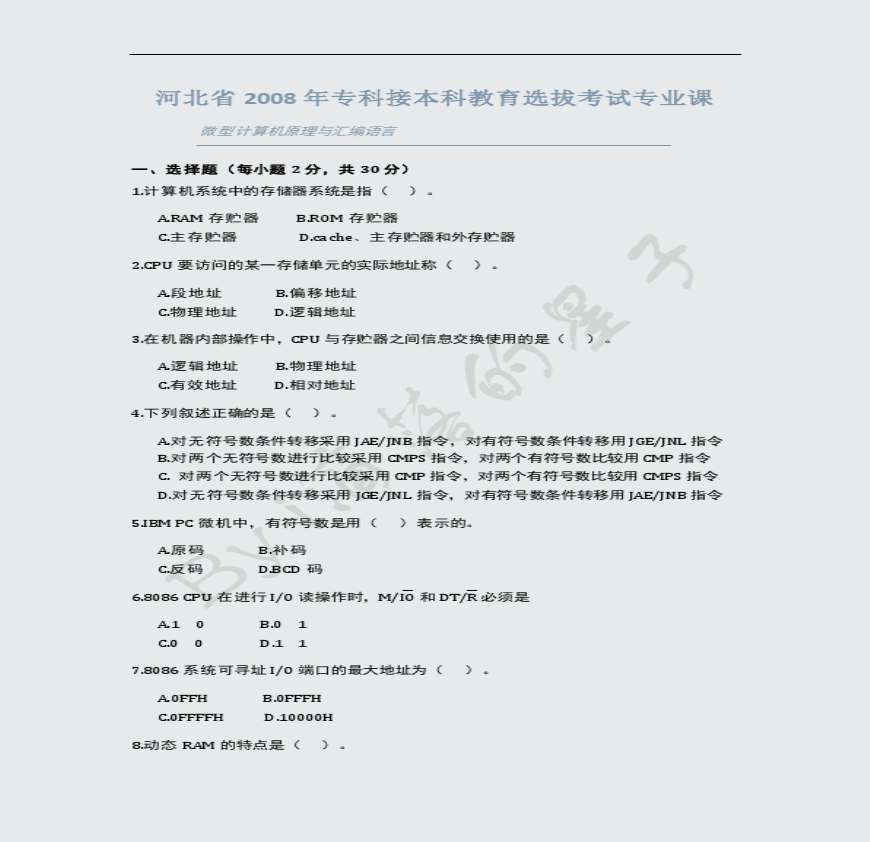 真题参考答案年月日b 多多文库多多文库 学习资料页 年应用基础统一考试试题 (考试时间分钟,满分分) 一、单项选择题 基于冯·诺依曼提出的存储程序控制原理的系统,其硬件基本结构 学习资料页 河北省河北省年考试考试类试卷类试卷(适用 PDF 其他人还搜了年计算机专业上岗前考试试卷 年计算机科学与技术理专升本 计算机专科毕业论文 计算机专业考试题库 专升本计算机基础知识试题及答案 年计算机考试题库 年月计算机系统结构真题及答案 专升本计算机基础试题 计算机专升本考试科目有哪些 年月微型计算机及接口技术自考 年计算机单招考试题及答案 年计算机专升本考试科目 年计算机技术专业调剂信息 计算机专接本考试科目 江苏专转本计算机题库及答案的 年可以计算机 试题 年计算机单招试题及答案 年河北省计算机专业理论试题 年计算机专业毕业论文 数据库系统工程师年上午真题 年计算机学科专业基础综合考试大纲 年计算机考试题库 计算机专业专升本 年计算机专升本真题 微型计算机及接口技术自考 真题 元 真题和答案下载_Wr模板真题_多多文库多多文库 学习资料页 江苏省普通高校年江苏省普通高校年江苏省普通高校年江苏省普通高校 专转本 统一考试统一考试统一考试统一考试应