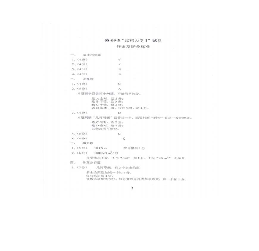 0(土木工程专业)结构力学I试卷答案资料下载,喜欢的朋友可以下载收藏!