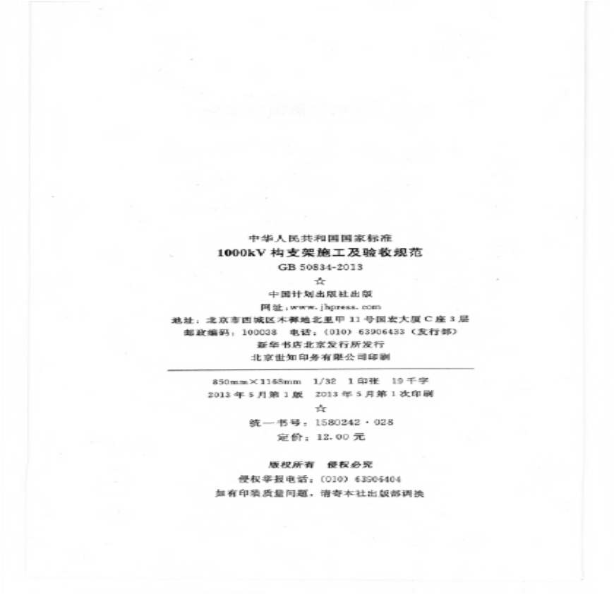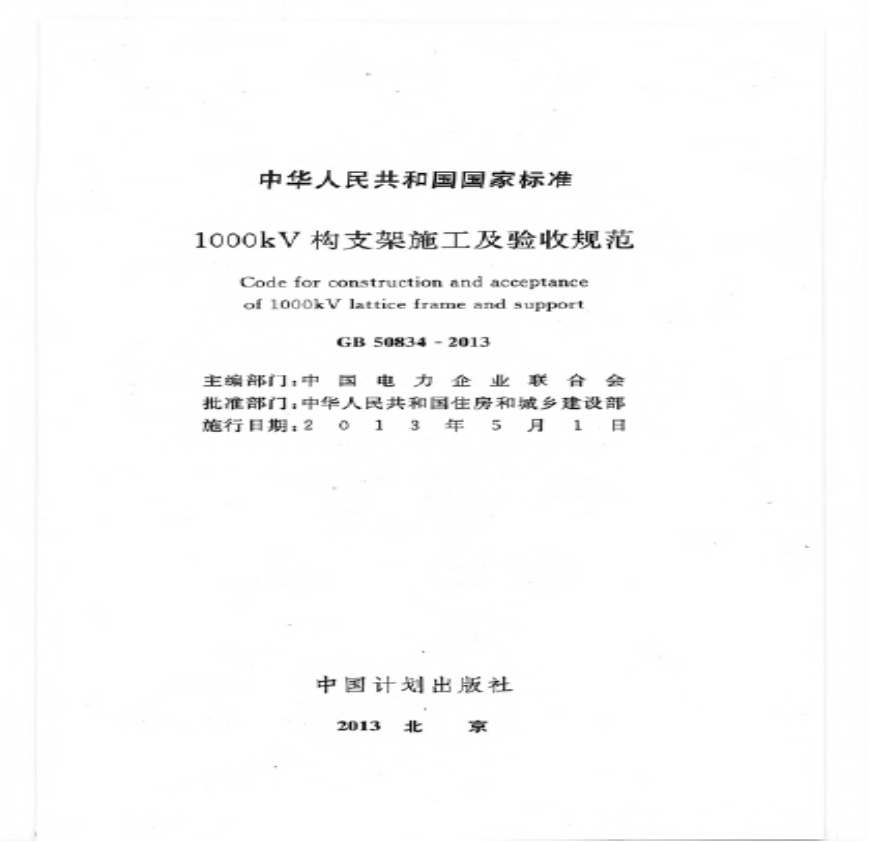 1000kV 构支架施工及验收规范GB50834-2013资料下载,喜欢的朋友可以下载收藏!
