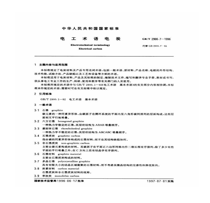 国标简介: 本标准规定了材料及产品专用名词术语,包括一般术语、原材料、产品名称、电刷的外形结构、技术性能、试验方法、产品缺陷国家标准