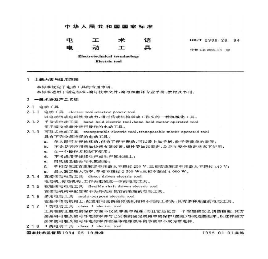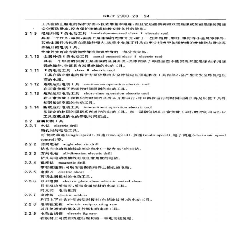 > 10.28-GBT 2900.28-1994 电工术语 电动工具