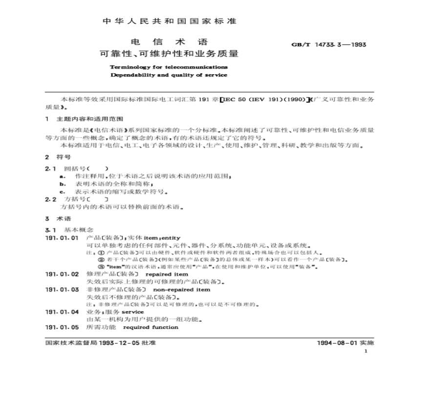 11.03-GBT 14733.3-1993 电信术语 可靠性、可维护性和业务质量.pdf 免费下载