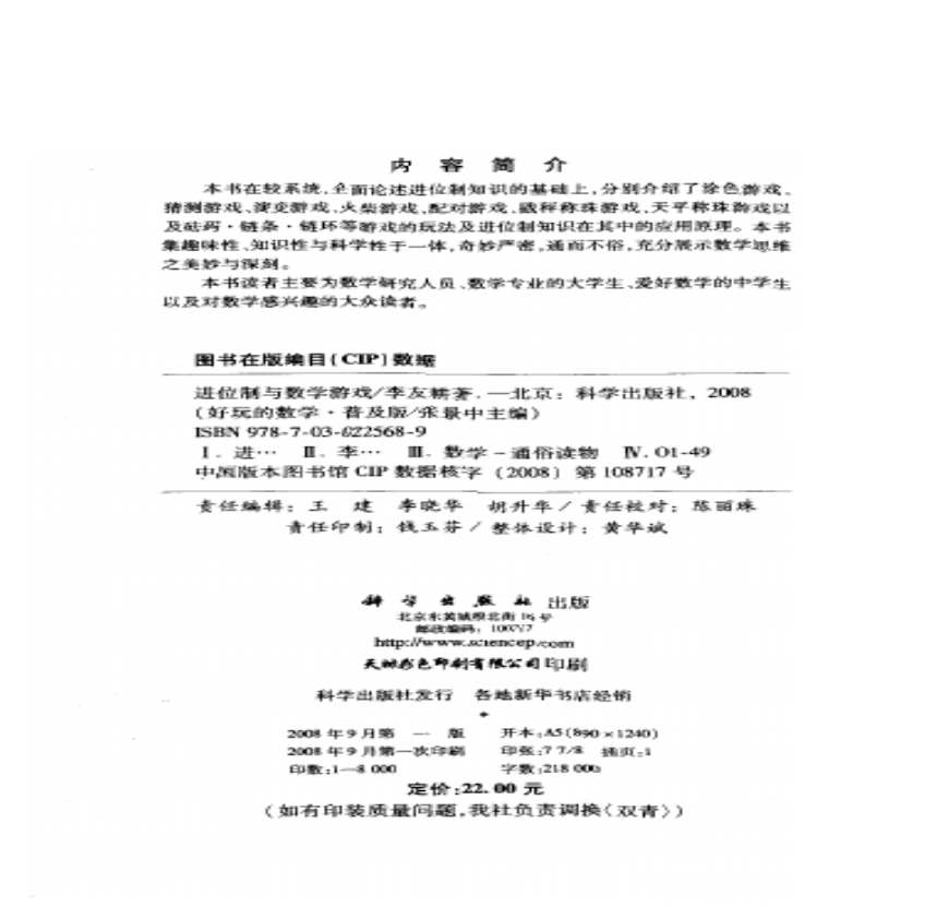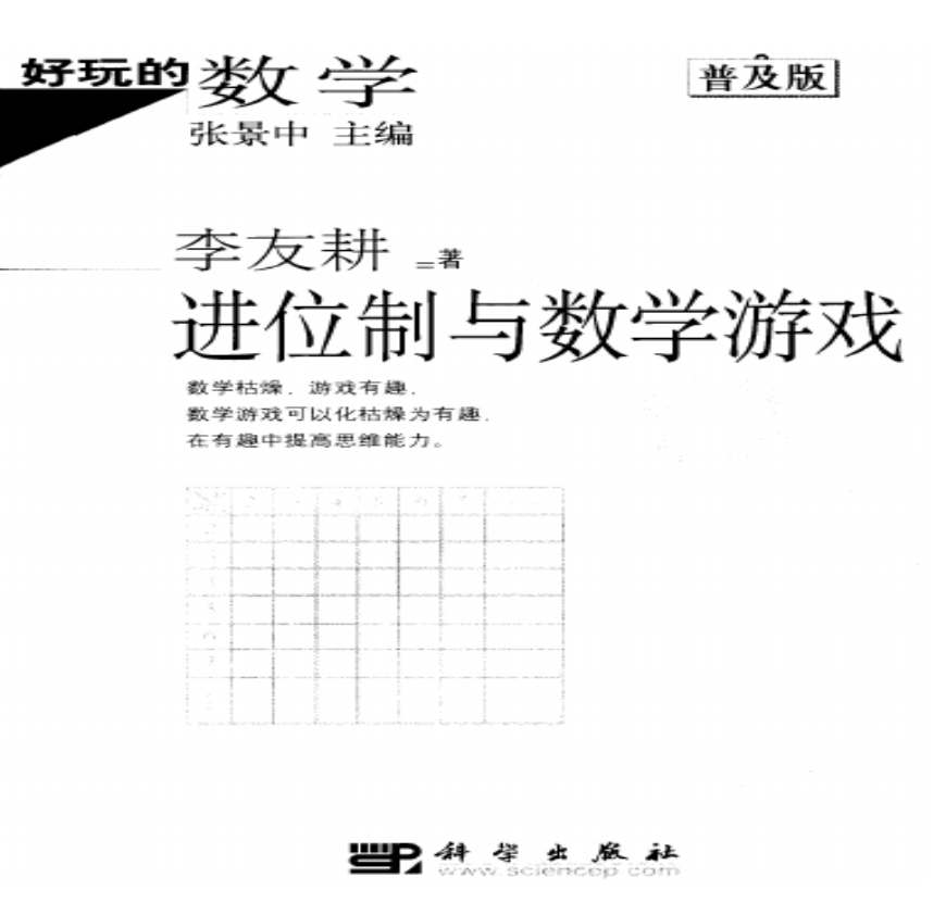 图书:在较系统、全面论述进位制知识的基础上,分别介绍了涂色游戏、猜测游戏、演变游戏、火柴游戏、配对游戏、戥秤称 学习资料页 (·普及版)李友耕著 PDF 上传日期: ::| 些