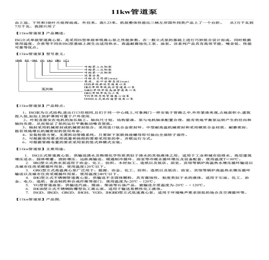 11kw管道泵简介型号参数及价格.pdf 免费下载