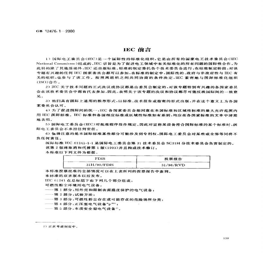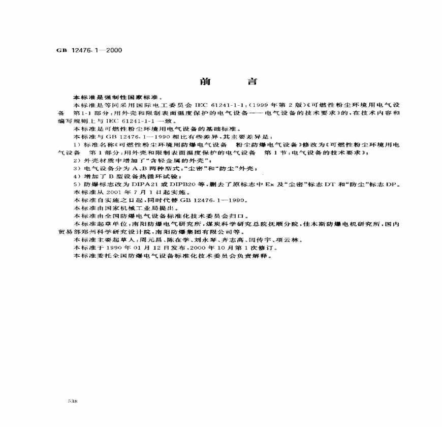 本标准是等同采用国际电工委员会IEC:年第版《可燃性粉尘环境用电气设备第