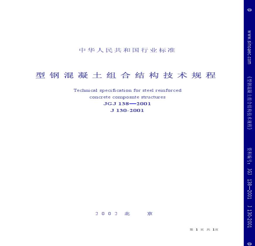 13型钢溷凝土组合结构技术规程JGJ138-2001.pdf 免费下载