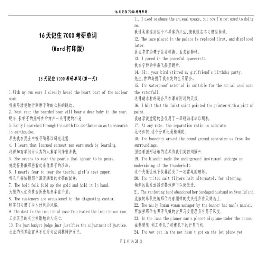 16天记住7000考研单词资料下载,喜欢的朋友可以下载收藏!