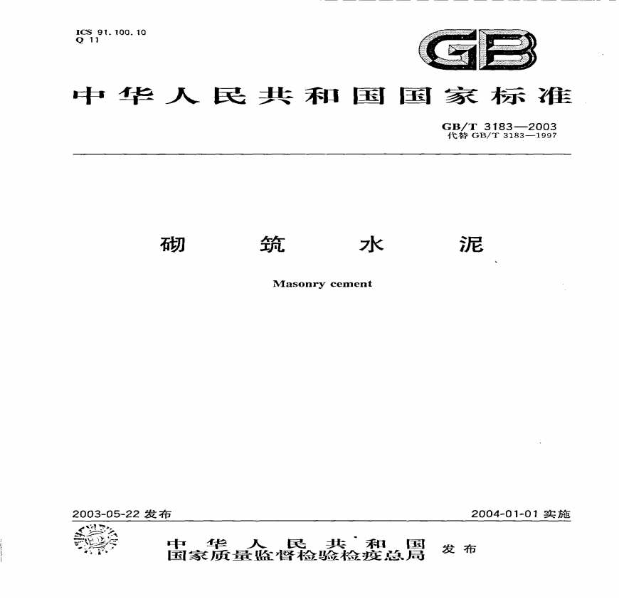 18.GBT3183-2003 砌筑水泥资料下载,喜欢的朋友可以下载收藏!