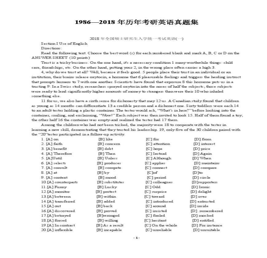 1986—2018年历年考研英语真题集(打印版).pdf 免费下载