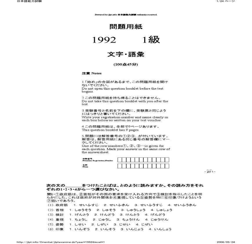 1992年日语N1真题与答案解析(完整版).pdf 免费下载