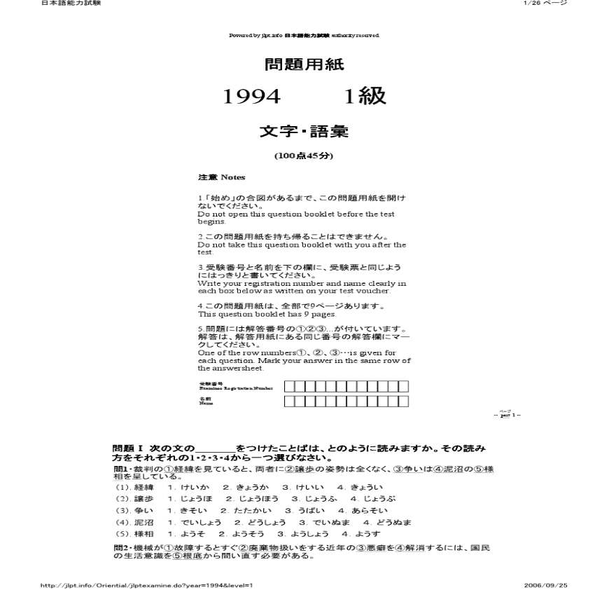 1994年日语N1真题与答案解析资料下载,喜欢的朋友可以下载收藏!