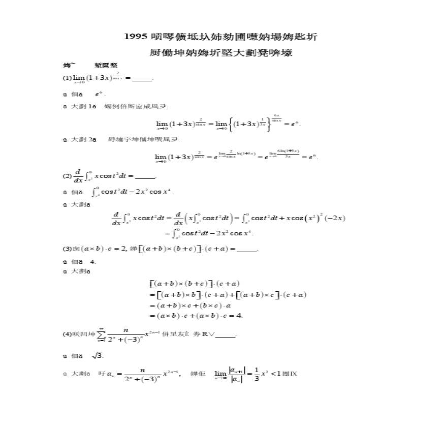 > 1995-2008考研数学真题解析合辑(数一至数四)