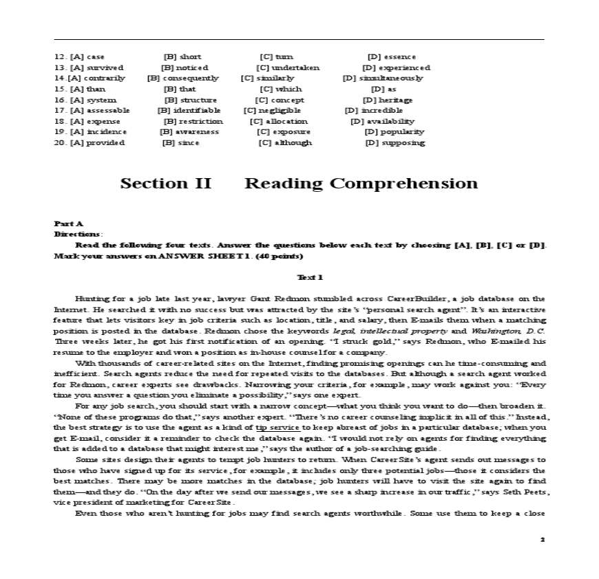 2012年1月研究生英语学位课统考真题及答案
