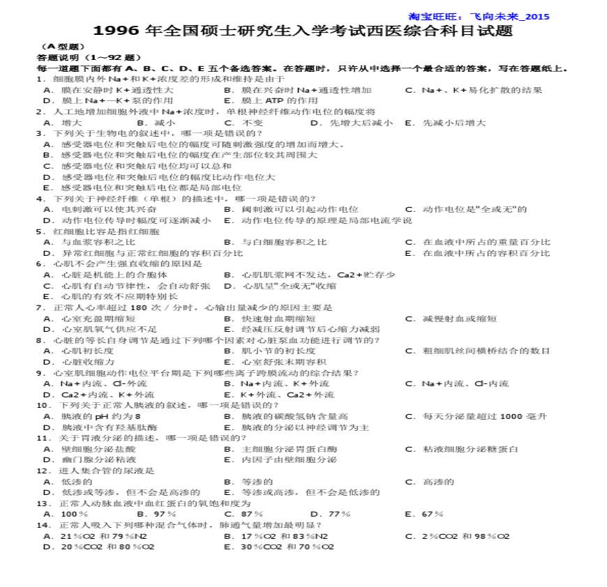 硕士研究生入学考试及答案 关注掌上 掌上APP (A型题) 答题说明(~题) 每一道题下面都有A、B、C、D、E五个备选答案。