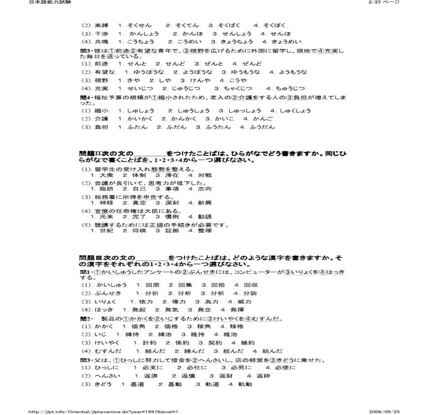 1997年日语N1真题与答案解析资料下载,喜欢的朋友可以下载收藏!