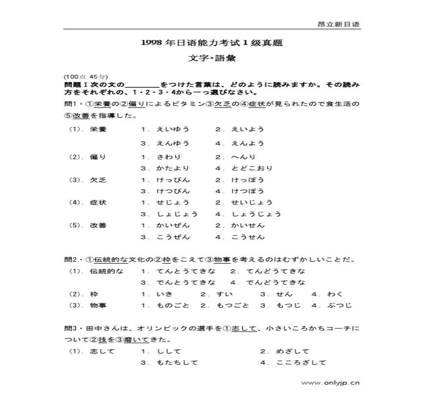 1998年日语能力考试1级真题-文字词汇.pdf 免费下载