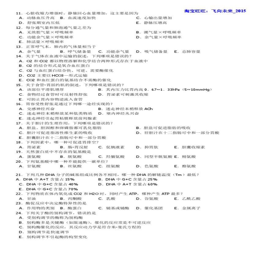 格式文件M 及答案(完美打印版)资料全文阅读 xb请输入您要查询的医学名词医学名词解释搜索您的位置:首页 考研试题 西医综合 每一道题下面都有A、B、C、D、E五个备选答案。