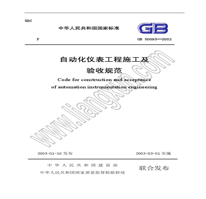 > 1、GB50093-2002 自动化仪表工程施工及验收规范