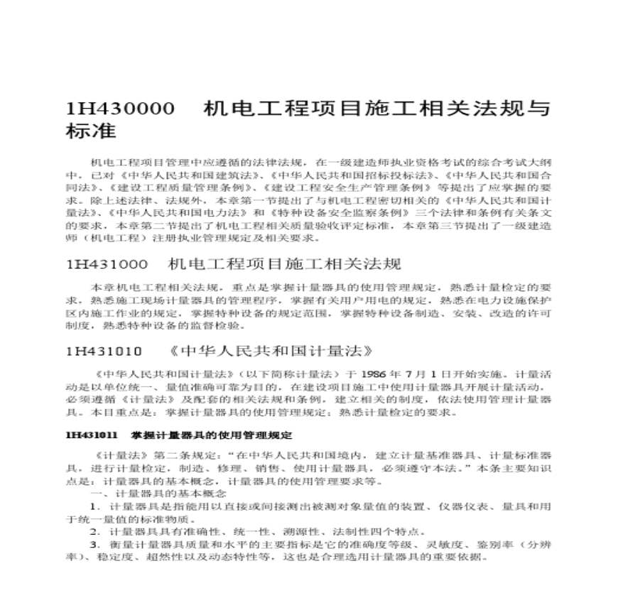 1H430000机电工程项目施工相关法规与标准.pdf 免费下载