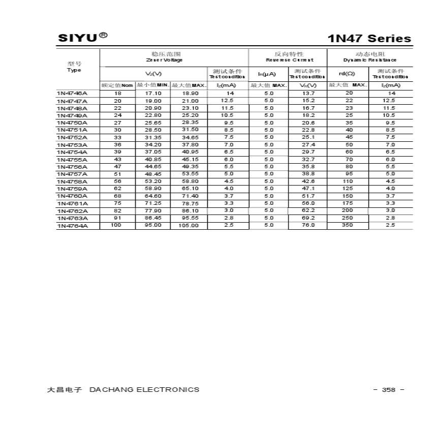 1N47系列稳压管参数资料下载,喜欢的朋友可以下载收藏!