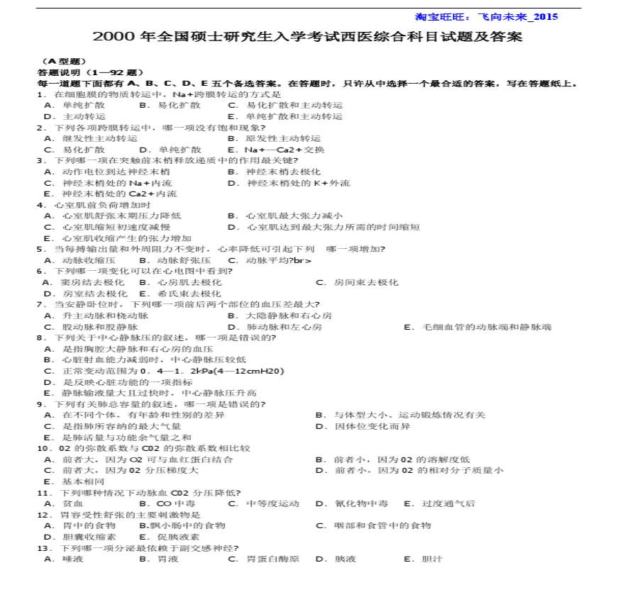 及答案,西医考研试题答案,全国硕士研究生入学考试西医综合试题及答案 年医学考试试题附答案(A型题)答题硕士研究生入学考试官:: x 咨询电话:总部地址:北京市海淀区北四环西路号中国技术交易大厦 硕士研究生入学考试 xb