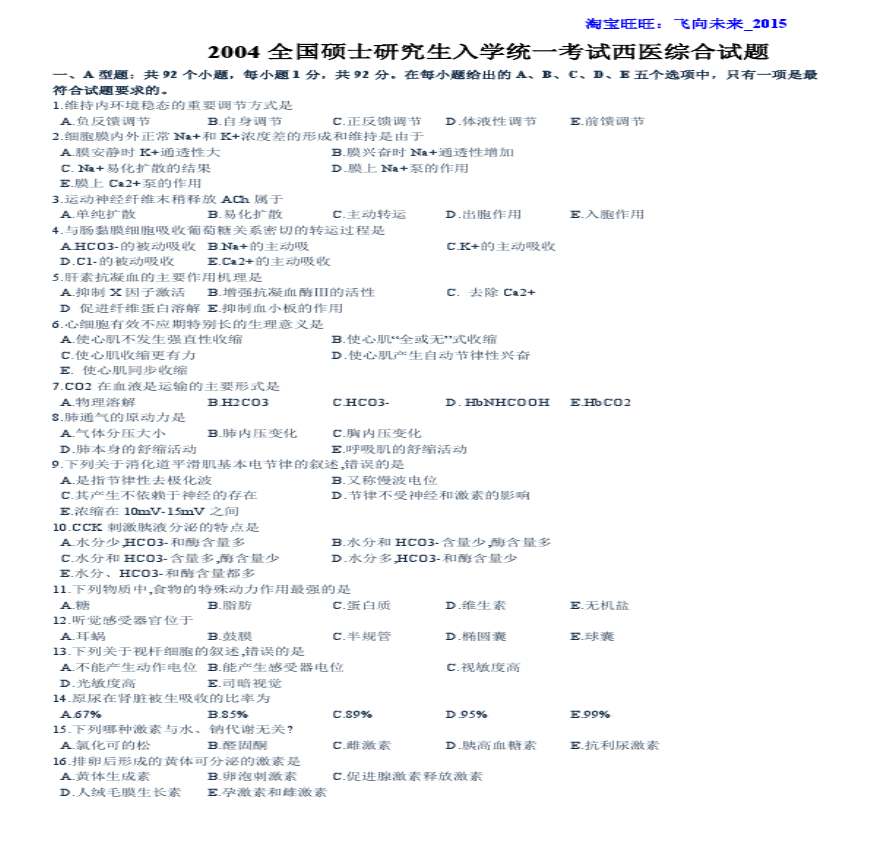 (可复制、可搜索)全国硕士研究生入学统一考试一、A型题:共个小题,每小题分,共分。