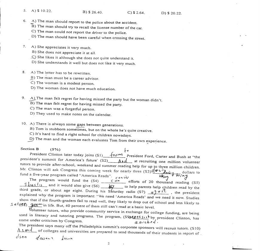 2000年全国硕士研究生入学统一考试英语试题及答案