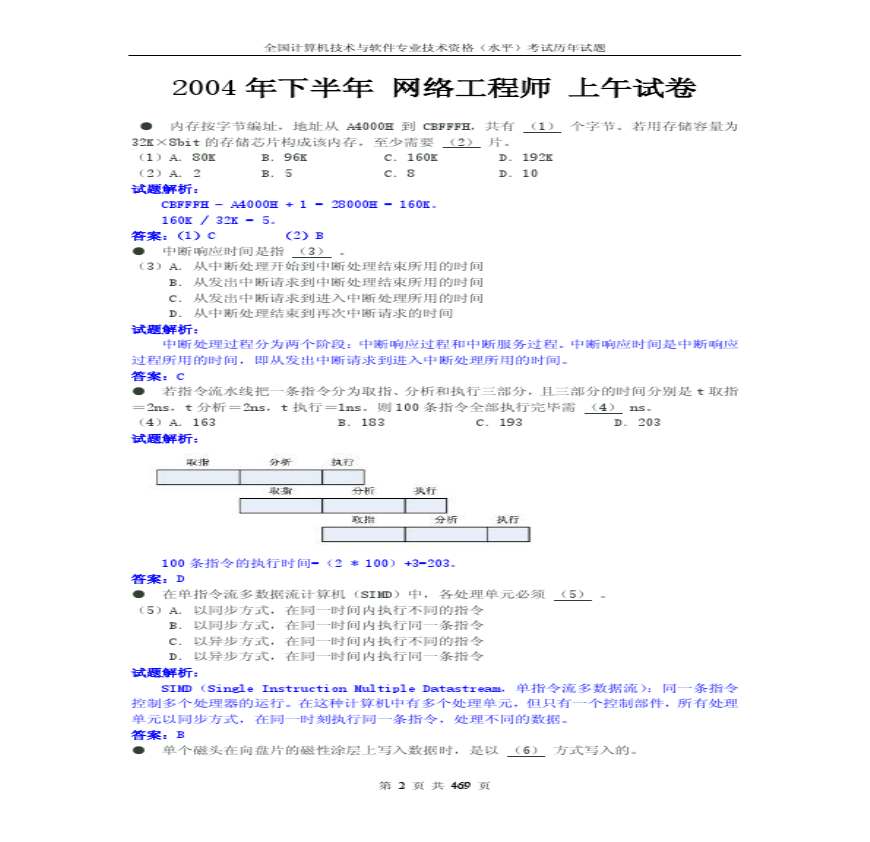 2004下半年-2012上半年软考网络工程师试题及解析.pdf 免费下载