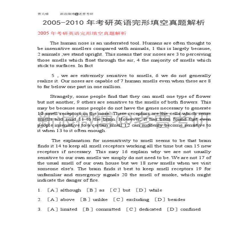 2005-2010年考研英语完形填空真题解析资料下载,喜欢的朋友可以下载收藏!
