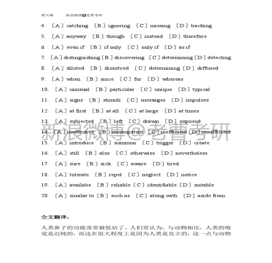 中国科学研究院中科院考博英语真题试题试卷及答案