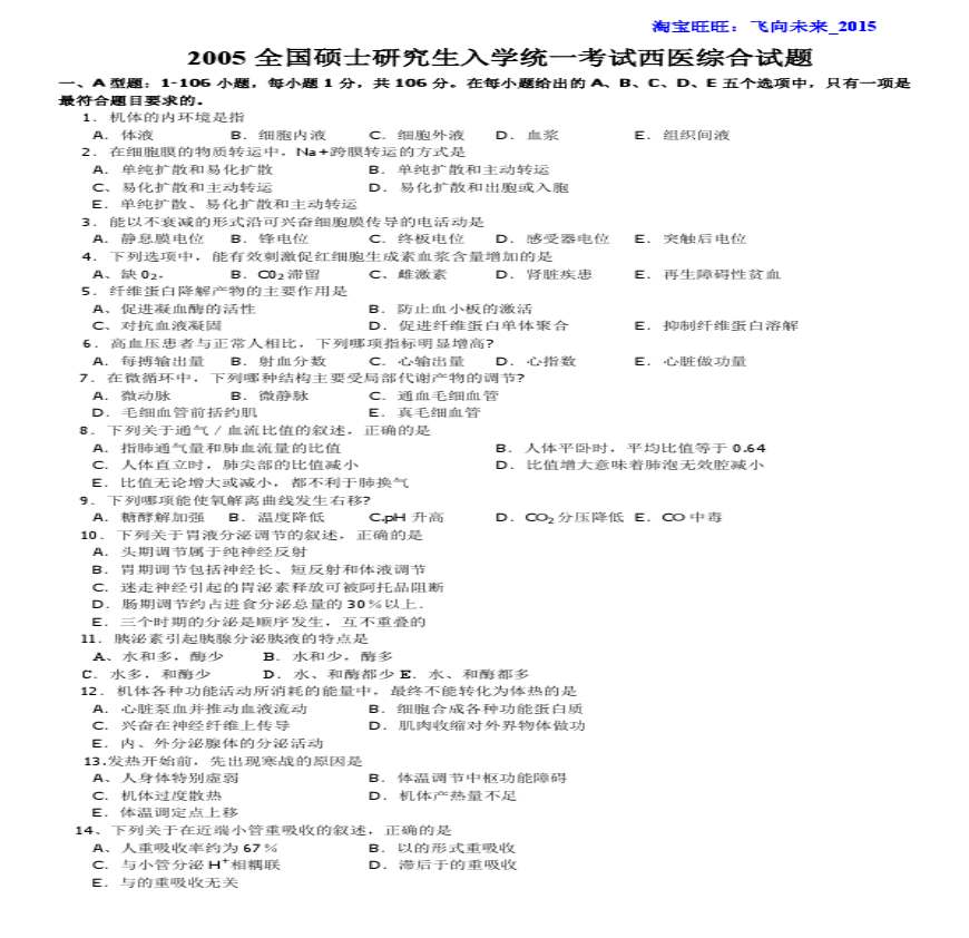 格式:全部DOC质量分及答案共页硕士研究生考试及答案一A型题:小题,每小题分,共分在每小题给出的ABCDE五个选项中,只有一项是最符合要求的 机体的内环境是指 A体液 B细胞内液 C细胞外液 D血浆 E组织间液 在细胞膜的~历年及答案解析知识课件共页~历年及答案解析共页及答案共页 查看全部 年月日集训营,为考生服务,为学员引路!型题: