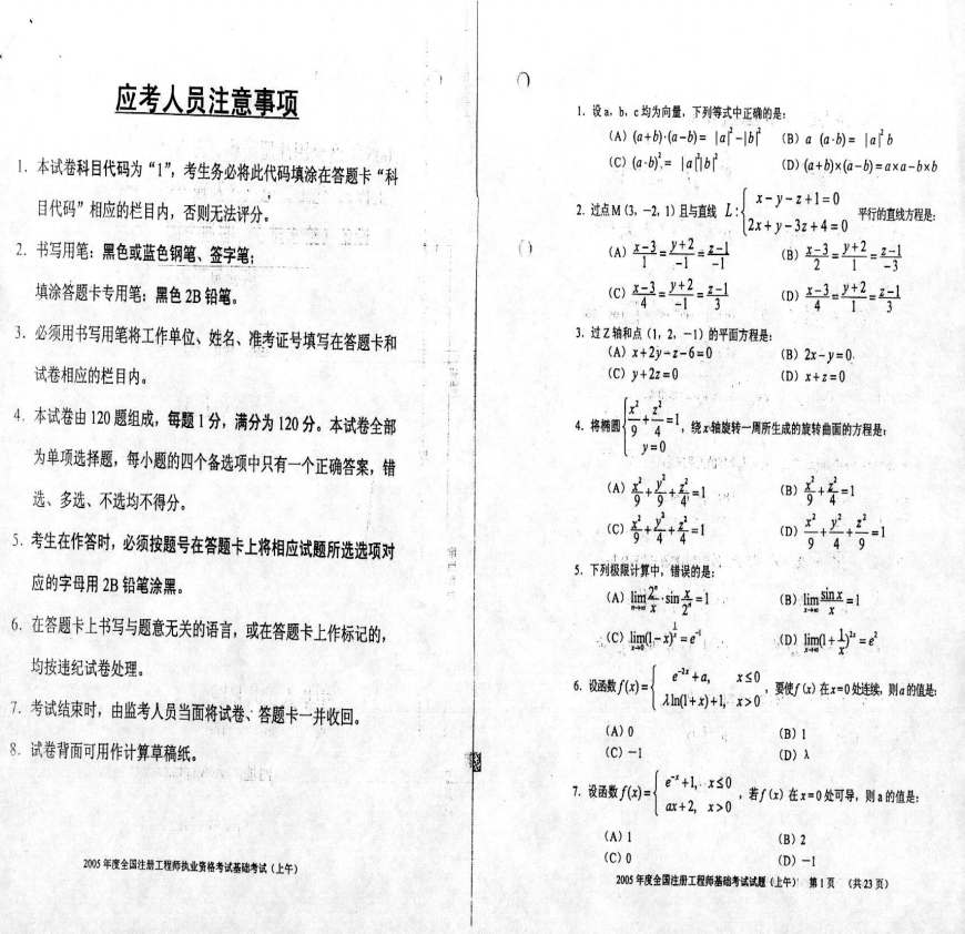 2005年注册电气工程师公共基础真题资料下载,喜欢的朋友可以下载收藏!
