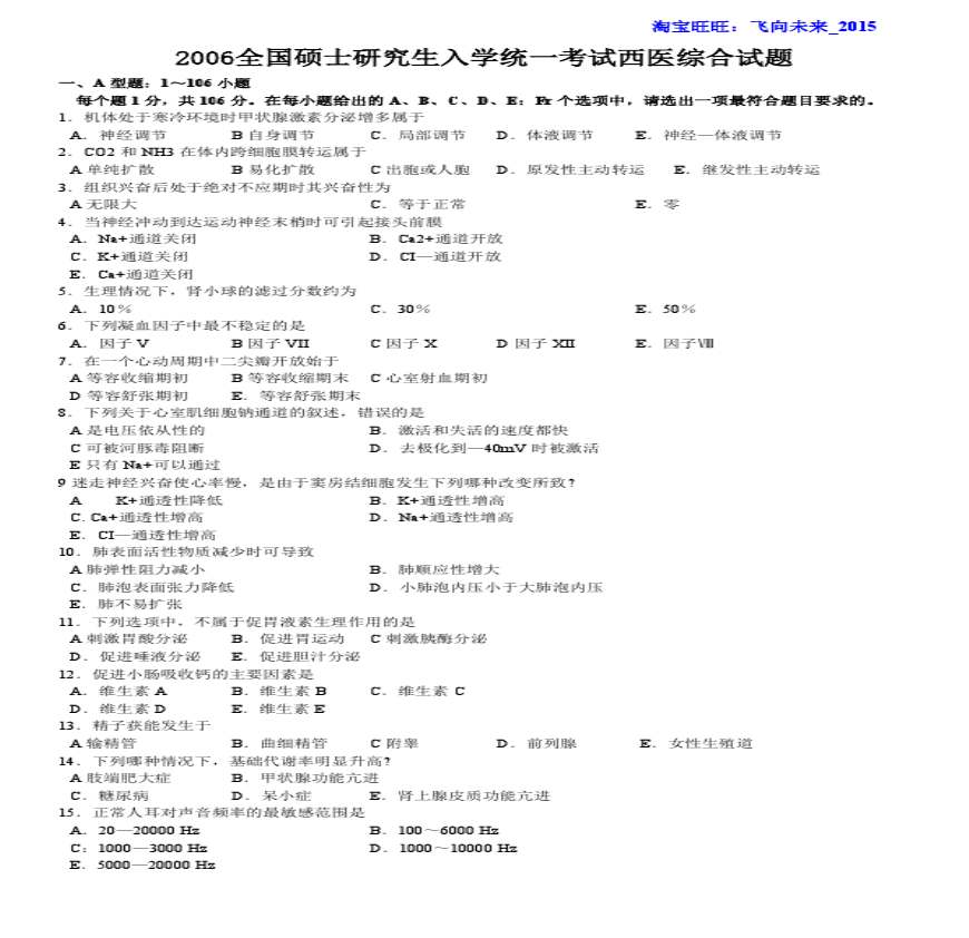 2006年考研西医综合真题资料下载,喜欢的朋友可以下载收藏!