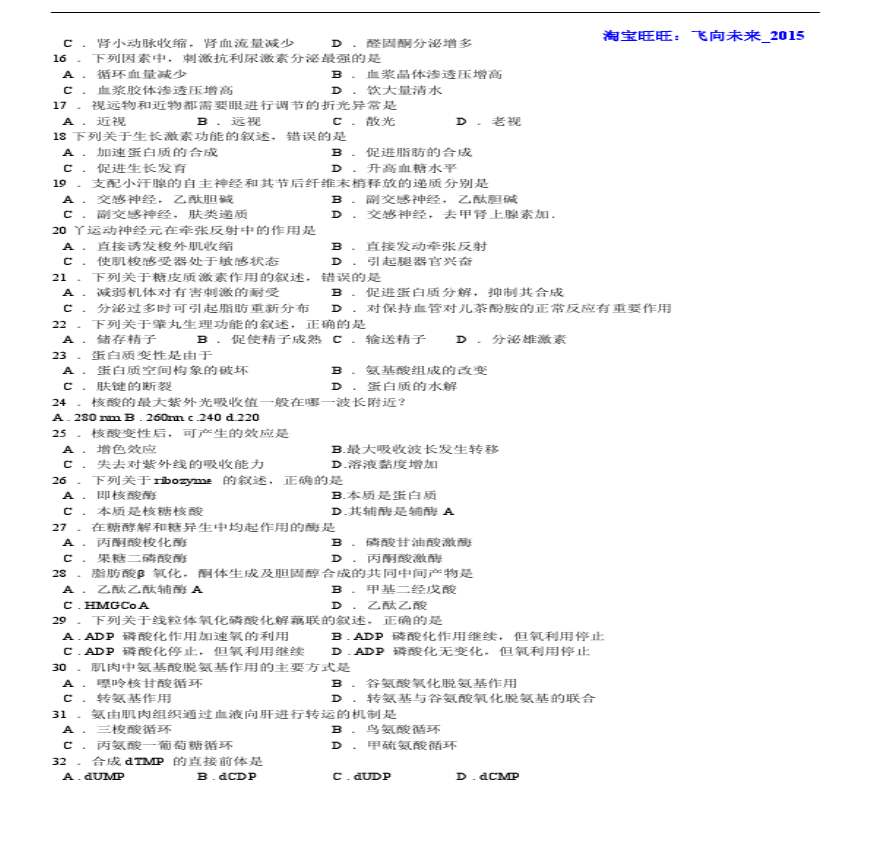 格式:全部DOC质量分及完整答案共页第 部分必答题 一 小题,每小题 分,共 分 一A 型题: 一 小题在每小题给出的 A B C D 四个选项中,请选出 一项最符合要求的 下列关于体液调节的叙述,错误的是 A 不受神及参考答案共页及答案共页及答案共页 查看全部