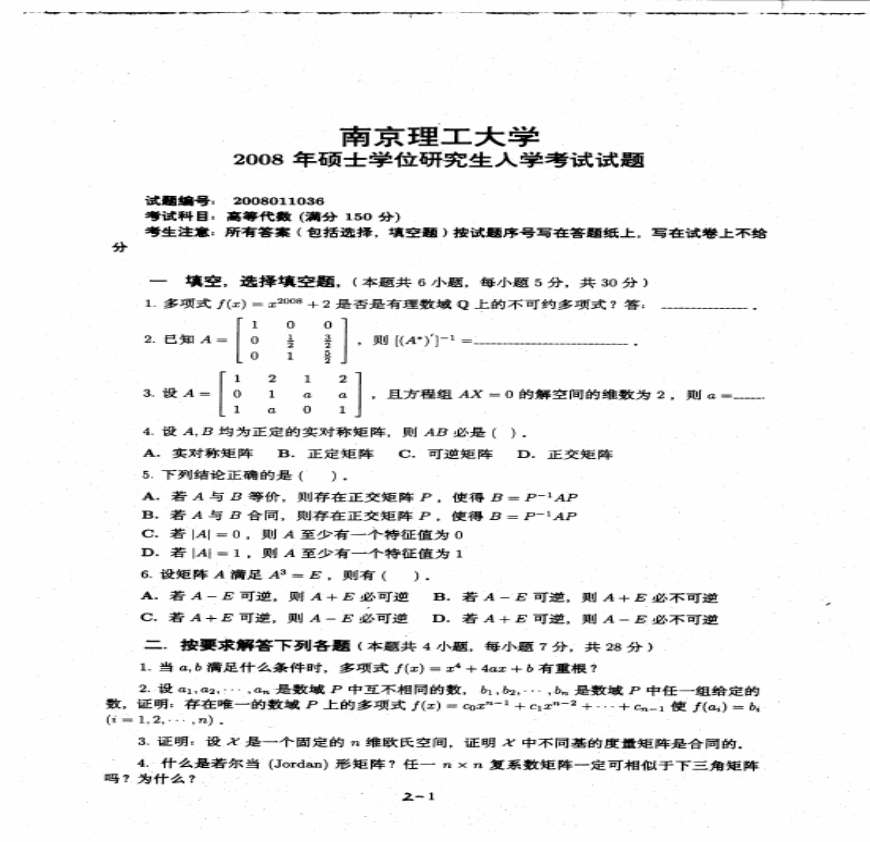 2008南京理工高等代数.pdf 免费下载