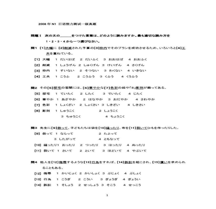 2008年日语N1真题与答案解析资料下载,喜欢的朋友可以下载收藏!