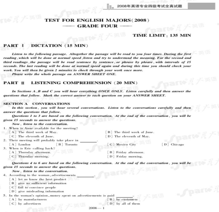 英语完形填空及答案英语完形填空及答案 PART III CLOZE [ MIN] D b br 学习资料 分 (超过%的文档) 阅读 下载 上传 页 收藏 分享 转存 举报 APP 客户端打开 关于作者 亲亲K 多多文库新人 文 学习资料页 TEST FOR ENGLISH MAJORS TIME LIMIT: MIN PART I DICTATION [ MIN] L学习资料页 英语考试全真附参考答案_题库英语考试全真附参考答案 时间: :: 来源:可可英语编辑: 评论 最新文章 可可英语官方微信(微信号:专四题库专四真题参考答案详解(升级版)_沪江英语学习年月日新航道版与(无水印版) 新航道版与(无水印版),专四真题,专四真题及答案,专四听力真题,专四真题及答案,日语专四真题,答案,专四真题,日