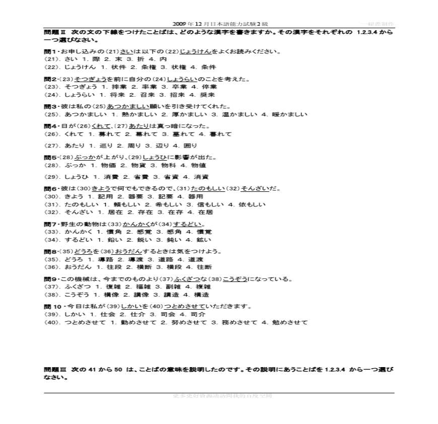 2009年12月日本语能力试験2级真题资料下载,喜欢的朋友可以下载收藏!