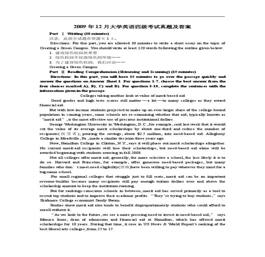 2009年12月英语四级真题及答案.pdf 免费下载
