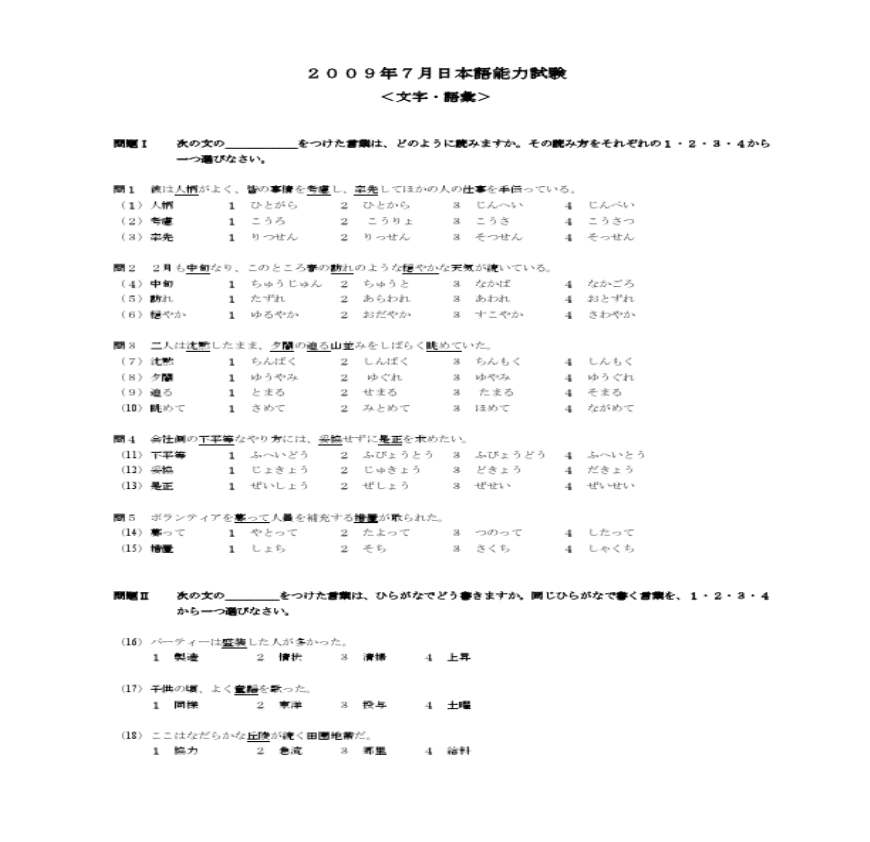 2009年7月N1真题与答案解析资料下载,喜欢的朋友可以下载收藏!