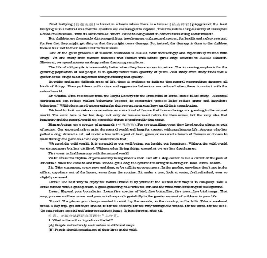 2001年全国硕士研究生入学统一考试英语试题及答案