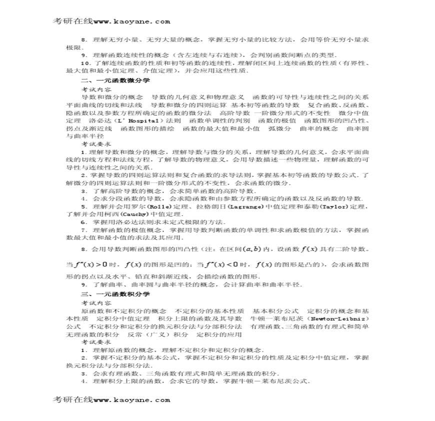 2010年考研数学大纲【数一】【高清完美打印版】.pdf 免费下载