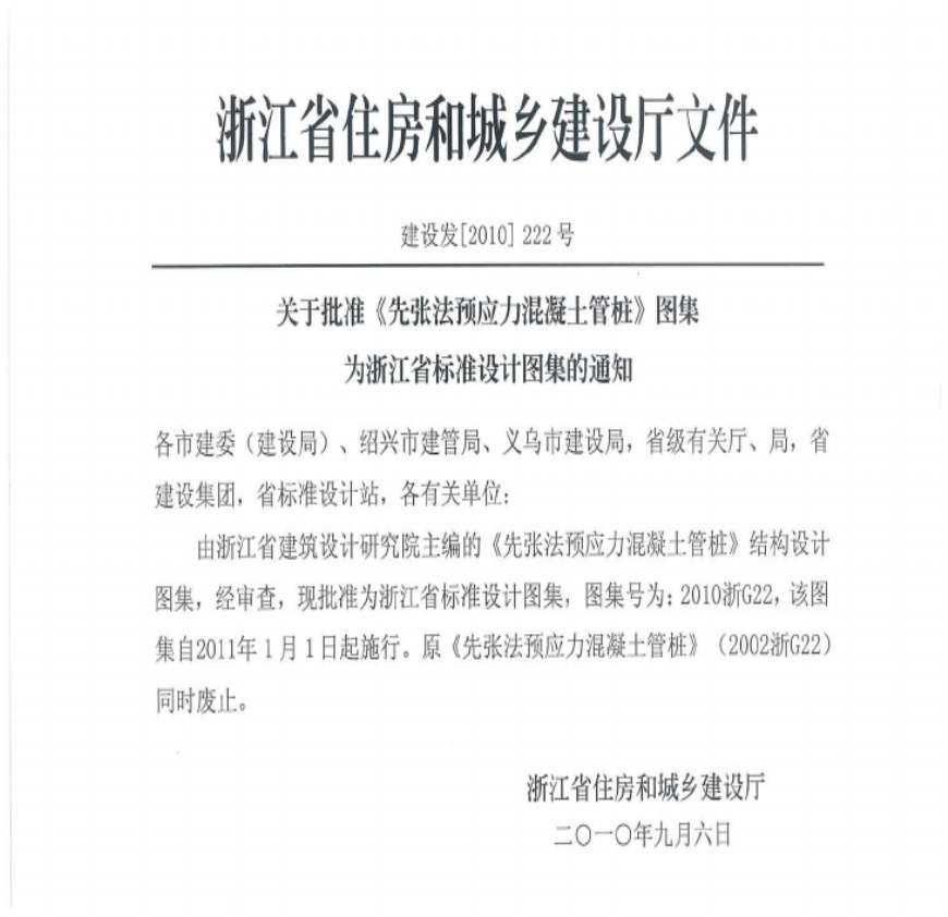 2010浙G22先张法预应力溷凝土管桩资料下载,喜欢的朋友可以下载收藏!
